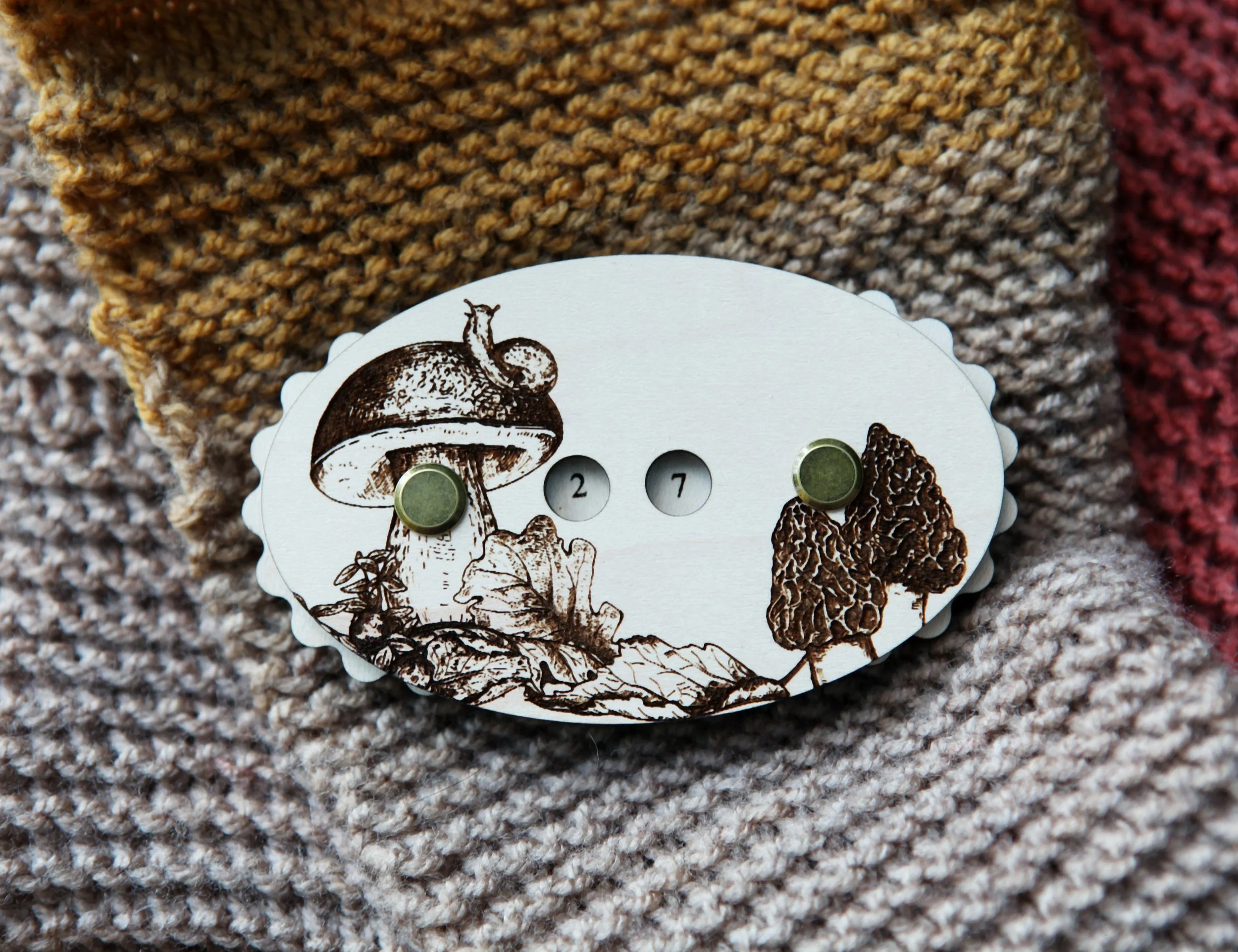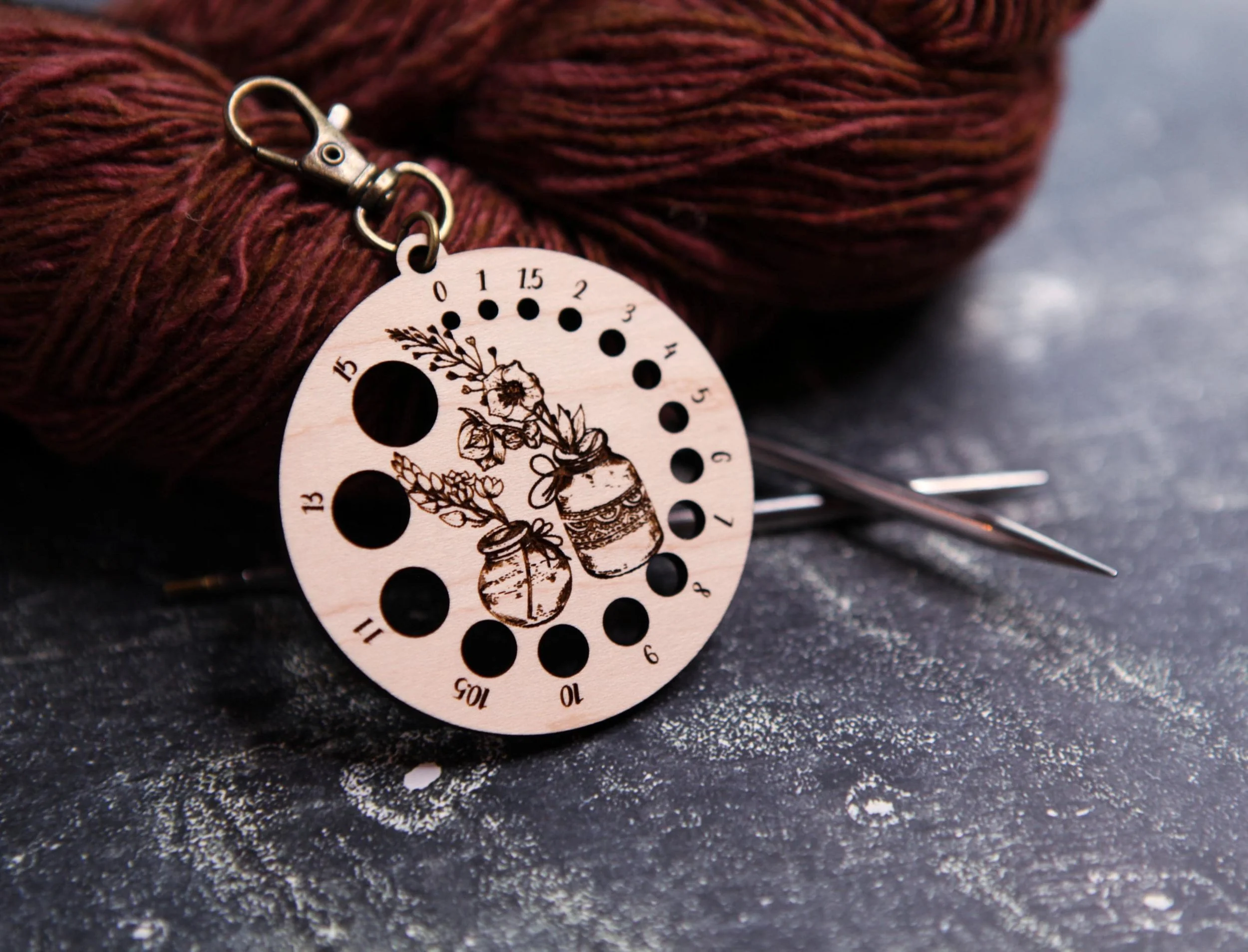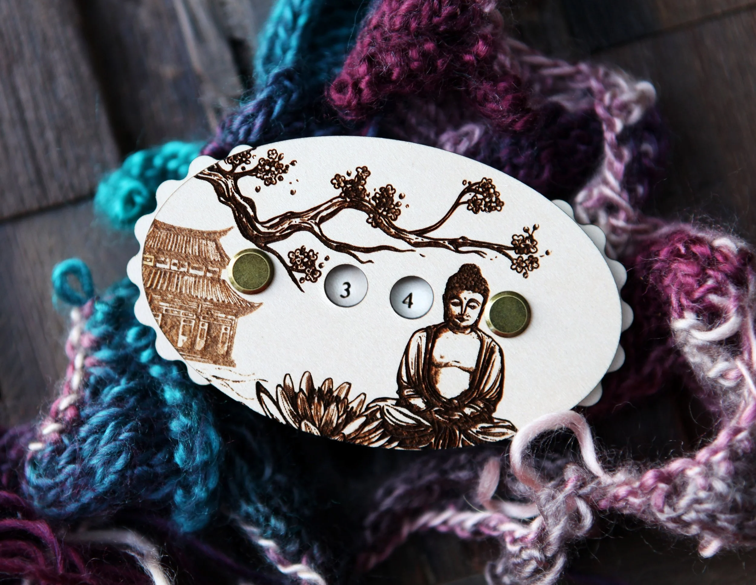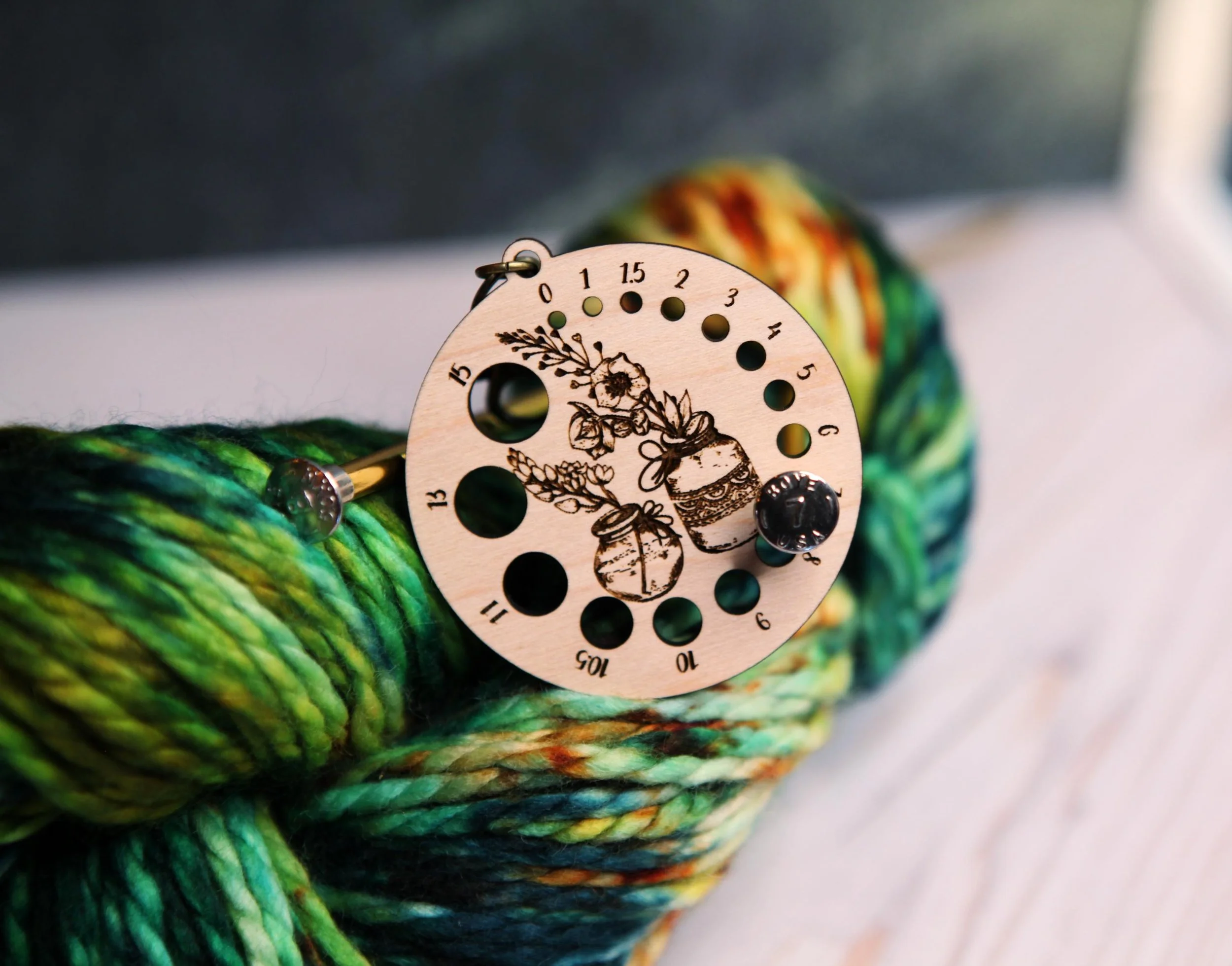 Categories: All Knitting & Crochet Row Counters Stitch Markers Gauge Swatch Ruler Needle Gauges Wraps Per Inch Tool Twist Gauge Sock & Mitten Blockers Yarn/Hair Clips Embroidery Embroidery Floss Holders Thread Card Winders Needle Minders Leather Leather Shawl Cuffs Leather Ruler Cuffs Leather Triangle Pouch Jewelry Earrings Antler Pendants Other Flower Press Ornaments Keychains Wine Charms All | Knitting & Crochet | Embroidery | Leather | Jewelry | Other | Raven with Forest Plants 2" Gauge Swatch, 7" Ruler, Needle, Twist Angle and Yarn Gauge Guide, -maple wood - Knit, Crochet, Spin tool $24.00 Ostrich Bird Gauge Swatch Measurement Ruler in Inches and Centimeters -Maple Wood with Bronze Clasp - For Knit, Crochet and other Fiber Arts $10.00 Boho Tear Drop Geometic Wood Earrings - Walnut Laser Cut Bohemian Water Drop Earrings $12.00 Round Circular Wood Earrings with Sunburst- Walnut or Maple $12.00 Mandala Snowflake Gauge Swatch Measurement Ruler in Inches and Centimeters -Maple Wood with Bronze Clasp - For Knit, Crochet and Fiber Arts $10.00 Clematis Vine Flower Embroidery Floss Thread Storage Holder - Rectangle Walnut Wood to store your cross stitch needlepoint yarn $10.00 Moon & Stars over Mountains Gauge Swatch Measurement Ruler in Inches and Centimeters Maple Wood with Bronze Clasp - For Knit and Crochet $10.00 Fox with Squirrel in Forest Gauge Swatch Measurement Ruler in Inches and Centimeters Maple Wood with Bronze Clasp - For Knit and Crochet $10.00 Peony Flower Gauge Swatch Measurement Ruler in Inches and Centimeters -Maple Wood with Bronze Clasp - For Knit, Crochet and other Fiber Arts $10.00 Edison Filament Light Bulbs Knitting Stitch Markers made from maple wood- Set of 6 - Vintage Incandescent bulb shapes from $12.00 Voodoo Doll Stitch Markers - Maple wood- Set of 6 - Cute doll effigies from $12.00 Leaf Scroll Leather Shawl Cuff, made from leather with a bronze stud. Great for holding your knitted and crocheted scarves, shawls and cowls $20.00 Mountain Trees Stars & Moon Shawl Cuff made from leather with a bronze stud, for holding your knitted and crocheted scarves shawls and cowls $20.00 Winter Snowflakes Shawl Cuff, made from navy blue leather with a bronze stud. Great for holding your knitted and crocheted scarves and cowls $20.00 Cactus Desert Plant Embroidery Floss Thread Storage Holder - Cacti Flower Circle Walnut Wood to store your cross stitch needlepoint yarn $10.00 Celtic Knots Shawl Cuff, made from leather with a bronze stud. Great for holding your knitted and crocheted scarves, shawls and cowls. from $20.00 Stars and Moon Shawl Cuff, made from leather with a bronze stud. Great for holding your knitted and crocheted scarves, shawls and cowls. from $20.00 Bee with Moon Leather Shawl Cuff, made from leather with a bronze stud. Great for holding your knitted and crocheted scarves, shawls & cowls $20.00 Butterfly and Flowers Leather Ruler Cuff, made from blue leather with bronze stud. Great for measuring knitting, sewing & fiber project $22.00 Scrolls Leather Ruler Cuff made from reclaimed distressed leather with bronze stud. Great for measuring knitting, sewing & fiber project $22.00 Celtic Trinity Knot within a Circle Wood Earrings from Walnut Wood, represents eternal life $12.00 Boho Tear Drop Geometic Wood Earrings - Walnut Bohemian Water Drop Zig Zag Earrings $12.00 Mountain Sun and Moon Wood Bottle Cap Magnetic Needle Minder for Needlepointing, Embroidery, Sewing and Cross Stitch and other needle art from $4.50 Campfire with Stars and Moon Embroidery Floss Thread Storage Holder - Maple Wood to store your cross stitch needlepoint, great for camping $10.00 Knitting Stitch Markers - Maple- Set of 6 - Witching Hour including broom, witch hat, black cat, crow, crystal ball and magic wand from $12.00 Sasquatch Knitting Stitch Markers - Maple wood- Set of 6 - Keeper of the Woods and Mountains and Forest: Yeti, Bigfoot, Abominable Snowman from $12.00 Moth Pendulum Board/Divination Board Embroidery Floss Thread Storage Holder from walnut wood to store your cross stitch and needlepoint yarn $10.00 Haunted Castle with Vampire Bat Floss Thread Storage Holder - Round Cherry Wood to store cross stitch needlepoint yarn, great for Halloween $16.00 Strength Tarot Card twist angle gauge tool used to measure the twist in your yarn. Made from maple wood. Great tool for spinners $10.00 Mandala Gauge Swatch Measurement Ruler in Inches and Centimeters - Maple Wood with Bronze Clasp - For Knit, Crochet and other Fiber Arts $10.00 Fuchsia Flower Embroidery Floss Thread Storage Holder - Rectangle Walnut Wood to store your cross stitch needlepoint yarn $10.00 Roses Flower Embroidery Floss Thread Storage Holder - Rectangle Cherry Wood to store your cross stitch needlepoint - Rose Floss Holder $10.00 Bee Leather Ruler Cuff, made from reclaimed distressed leather with bronze stud. Great for measuring knitting, sewing & fiber project $22.00 Knitting and Crochet Row Counter. Dogwood tree flowers on a branch, made from maple wood. Turn the dials to keep progress of your rows. $22.00 Clip for yarn ball or hair. Engraved cherry wood clip with mushrooms. Great for loose ends on yarn or hair barrette. $8.00 Buddha Embroidery Floss Thread Storage Holder - Circle Walnut Wood to store your cross stitch needlepoint yarn with Buddha with flowers $10.00 Knitting and Crochet Row Counter. Buddha under cherry tree and pagoda made from maple wood. Turn the dials to keep progress of your rows. $22.00 Dragonfly Moon Gauge Swatch Measurement Ruler in Inches and Centimeters -Maple Wood with Bronze Clasp - For Knit, Crochet & other Fiber Arts $10.00 Moth Shawl Cuff, made from leather with a bronze stud. Great for your knitted and crocheted scarves, shawls and cowls. With yarrow plant. $20.00 Crystals with Magic Flowers and Stars Spinners Control Tool WPI (Wraps per Inch) Ruler and Twist Angle Gauge for yarn. $15.00 Wonderful Wizard of Oz Knitting Stitch Markers - Maple- Set of 6 including OZ, Cowardly Lion, Tin Man,